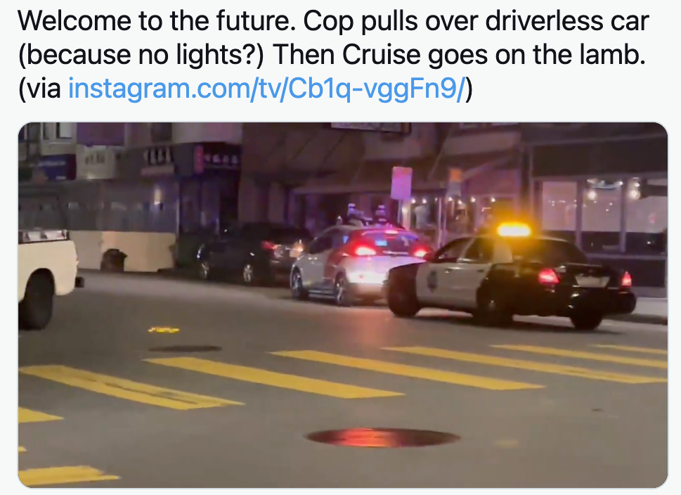 So this driverless car gets pulled over.