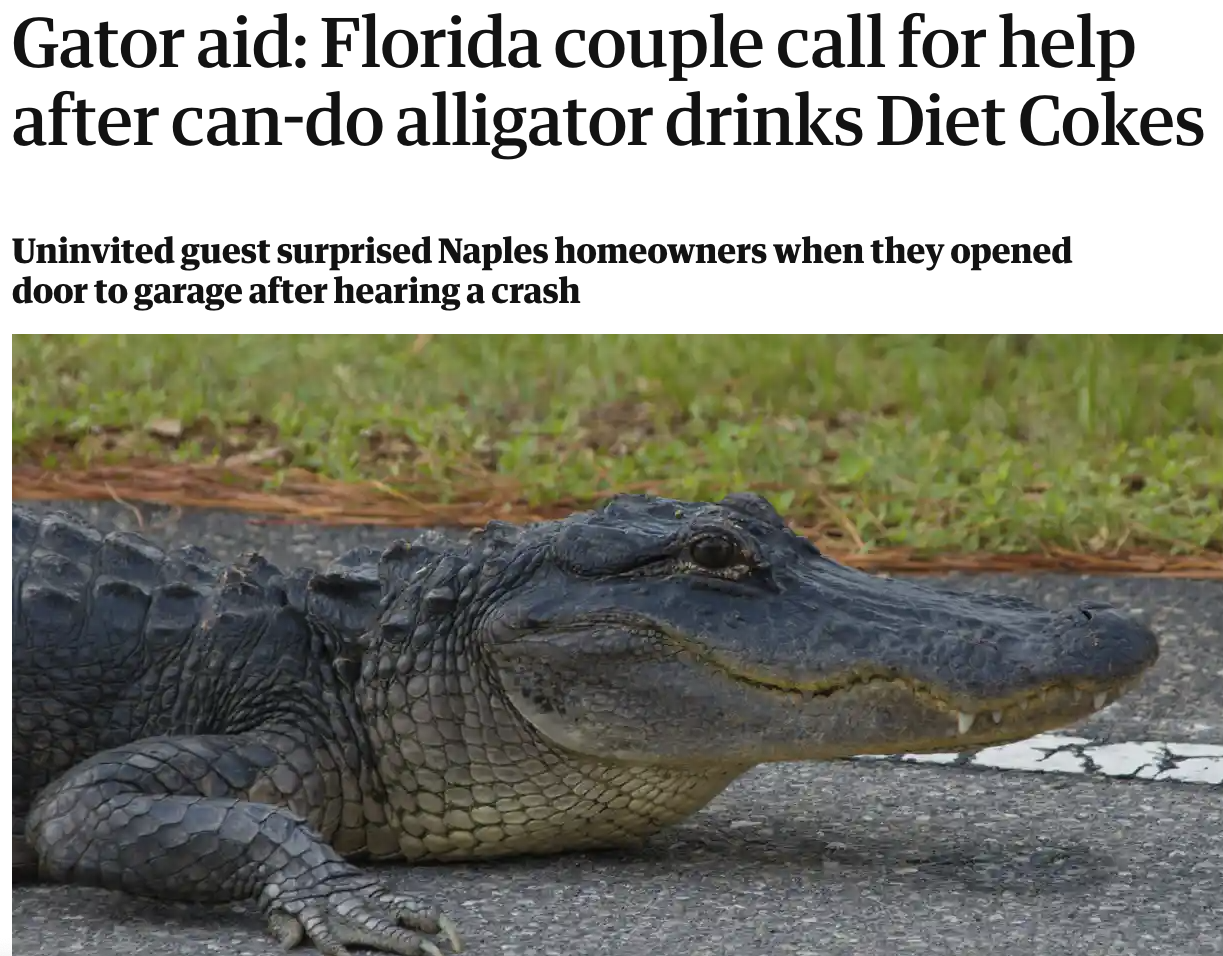Gators in garages drinking hot Cokes!