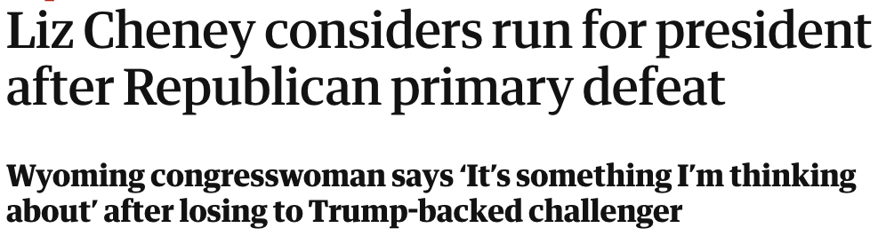 Liz Cheney for Pres? I’m not enthralled.